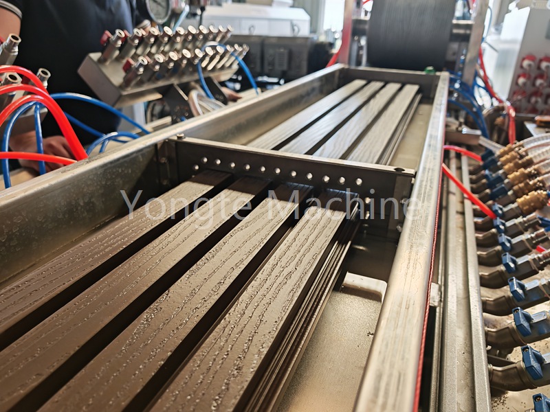 قد تتسبب درجات الحرارة المفرطة في تدهور البلاستيك وكربنة دقيق الخشب ، مما يقلل من قوة المواد. وعلى العكس من ذلك ، فإن درجات الحرارة غير الكافية تؤدي إلى عدم كفاية التلطيخ وتدفق المواد الضعيفة ، مما يؤدي إلى تشوه الانكماش غير المتكافئ بعد البثق. يجب تنفيذ نظام التحكم في درجة الحرارة المجزأة ، مع درجة حرارة بوابة الموت أعلى قليلاً من منطقة التجانس لمنع التبريد المبكر عند بوابة الموت ، مما قد يتسبب في مشاكل تصريف المواد أو خشونة السطح (زيادة مخاطر التشوه في المراحل اللاحقة). يجب ضبط ملامح درجة الحرارة وفقًا للركيزة البلاستيكية: