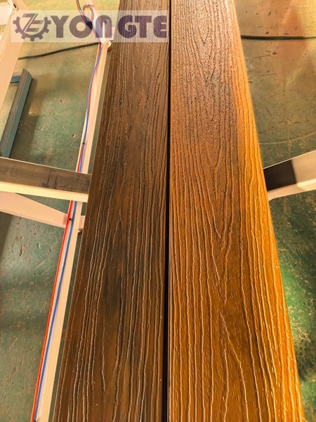 وفقاً لفريق Yongte الفني، ركزت هذه الترقية بشكل أساسي على دقة القالب وأنظمة التحكم في العمليات. في السابق، كانت الصناعة تواجه في كثير من الأحيان مشكلات تتعلق بعمليات النقش ثلاثي الأبعاد، مثل عمق النسيج غير المتساوي وتشويه السطح. ومن خلال التعديلات المتكررة والتحسين التدريجي لتصميم القالب ومعلمات التحكم في درجة الحرارة، حققوا في نهاية المطاف إعادة إنتاج نسيج يتجاوز 95%، وقفز معدل تأهيل المنتج من 92% إلى 98.5%. أصبح خط الإنتاج هذا الآن قادرًا على معالجة ألياف الخشب والمواد المركبة HDPE الصديقة للبيئة بشكل موثوق، مما يحقق أنسجة منقوشة يصل عمقها إلى 2-3 مم. سواء أكان الأمر يتعلق بالملمس القوي للبلوط أو الملمس الرقيق للجوز، فإن الملمس والتأثير البصري قابلان للتكرار بدرجة كبيرة، مما يجعل الشعور والتأثير البصري لا يمكن تمييزهما فعليًا عن الشيء الحقيقي.