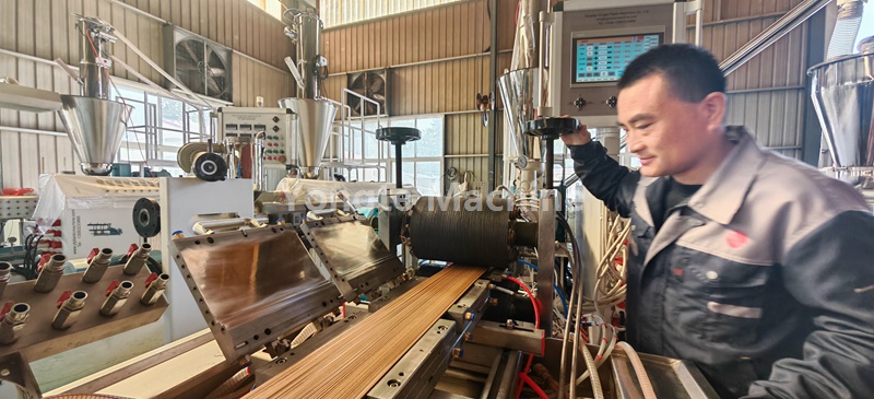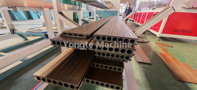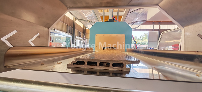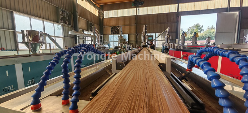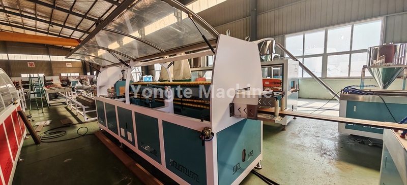 تم تجهيز خط بثق التشكيل الجانبي WPC هذا بنظام تغذية الفراغ الأوتوماتيكي، ونظام بثق اللولب المزدوج المخروطي الفعال، ونظام التحكم PLC، وآلة النقش ثلاثية الأبعاد عبر الإنترنت، وطاولة تبريد ومعايرة المياه والفراغ، وسحب كاتربيلر مزدوج، وآلة قطع أوتوماتيكية مع مجمع الغبار، ومكدس المنتج.